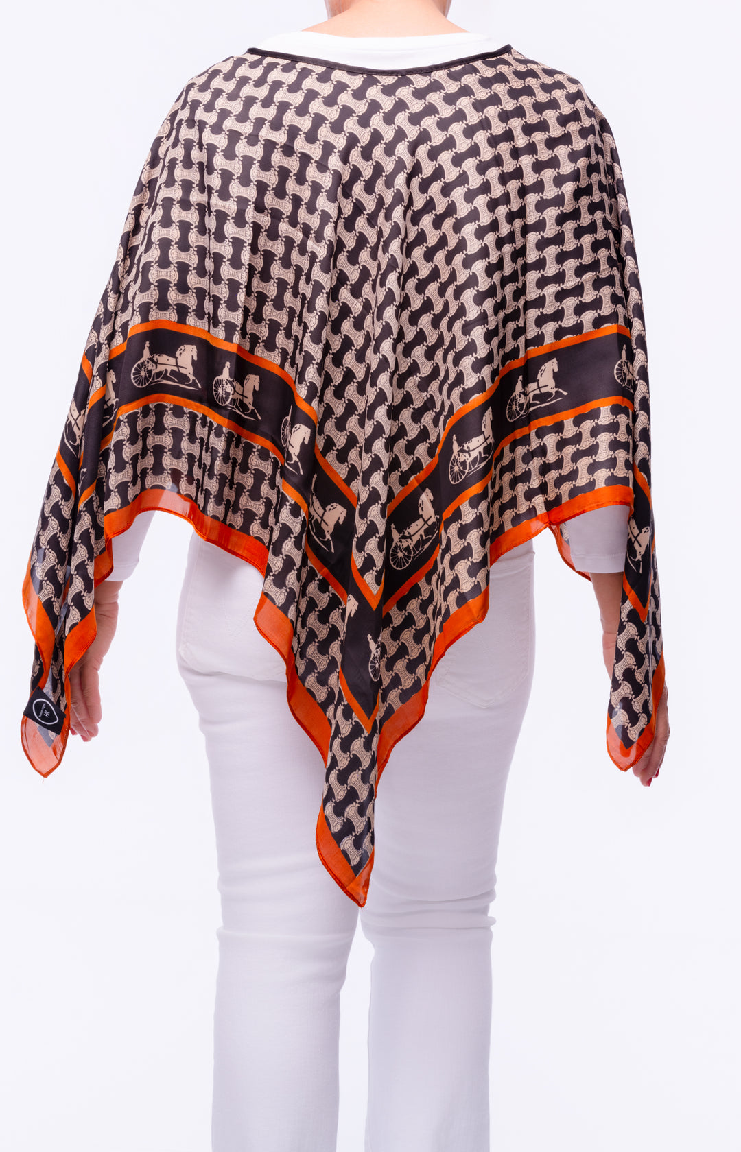 Our custom design with an opening in the scarf transforms it into both a poncho top to be worn over your outfit or taking it off to be worn on your shoulders as a scarf or around your neck. Women also love to wear these as bathing suit cover ups!