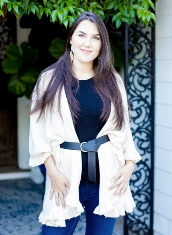 "Layering season is coming and I admit I'm getting a little excited. I'm having a great time experimenting with this new item from Heidi Kagan—it's one wrap that can be styled four ways."
